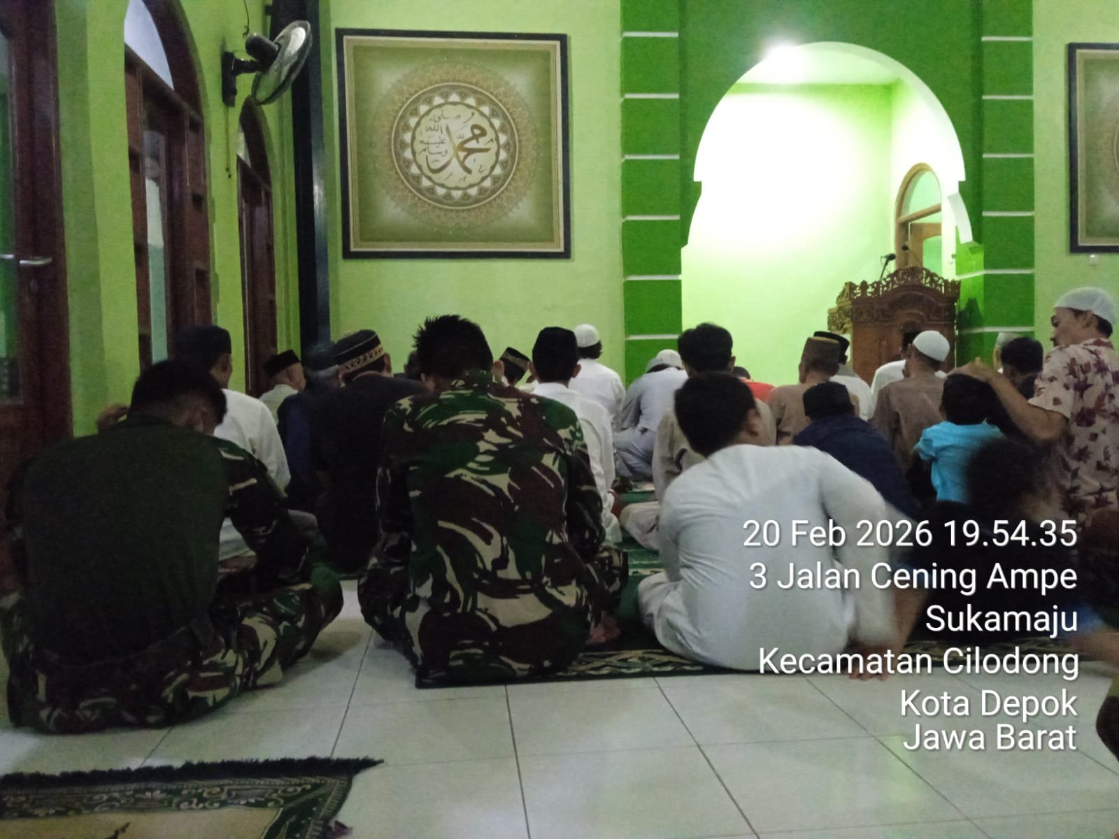 Depok – Kebersamaan antara Satgas TMMD Ke-127 TA 2026 Kodim 0508/Depok dan masyarakat kembali terlihat dalam kegiatan Shalat Tarawih berjamaah di Masjid At Taufik, Kelurahan Sukamaju, Kecamatan Cilodong, Kota Depok, Sabtu malam, 21 Februari 2026.