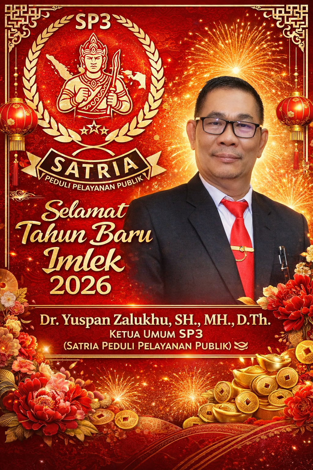 JAKARTA – Ketua Umum SP3 (Satria Peduli Pelayanan Publik), Dr. Yuspan Zalukhu, SH., MH., D.Th., mengajak masyarakat menjadikan perayaan Tahun Baru Imlek 2026 sebagai momentum refleksi untuk memperkuat komitmen kebangsaan dan pelayanan kepada publik.