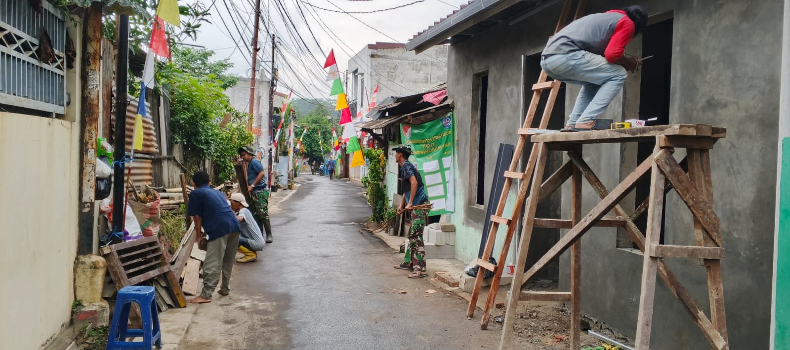 Dengan dukungan 5 set peralatan pertukangan serta personel gabungan lintas instansi, pengerjaan RTLH berjalan sesuai rencana.