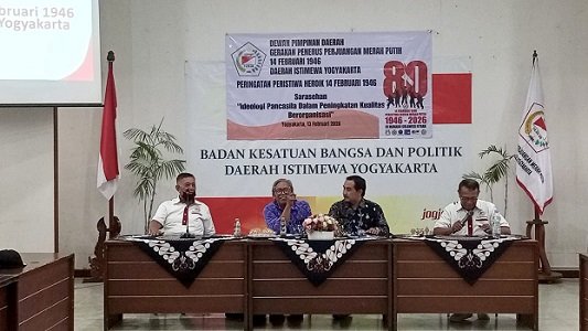 YOGYAKARTA, 14/02/2026 – Delapan puluh tahun setelah peristiwa heroik 14 Februari 1946 mengguncang Manado, semangat perjuangan itu kembali digaungkan di Daerah Istimewa Yogyakarta. Dewan Pimpinan Daerah Gerakan Penerus Perjuangan Merah Putih (GPPMP) DIY menggelar sarasehan kebangsaan yang menegaskan pentingnya penguatan ideologi Pancasila di tengah tantangan zaman.