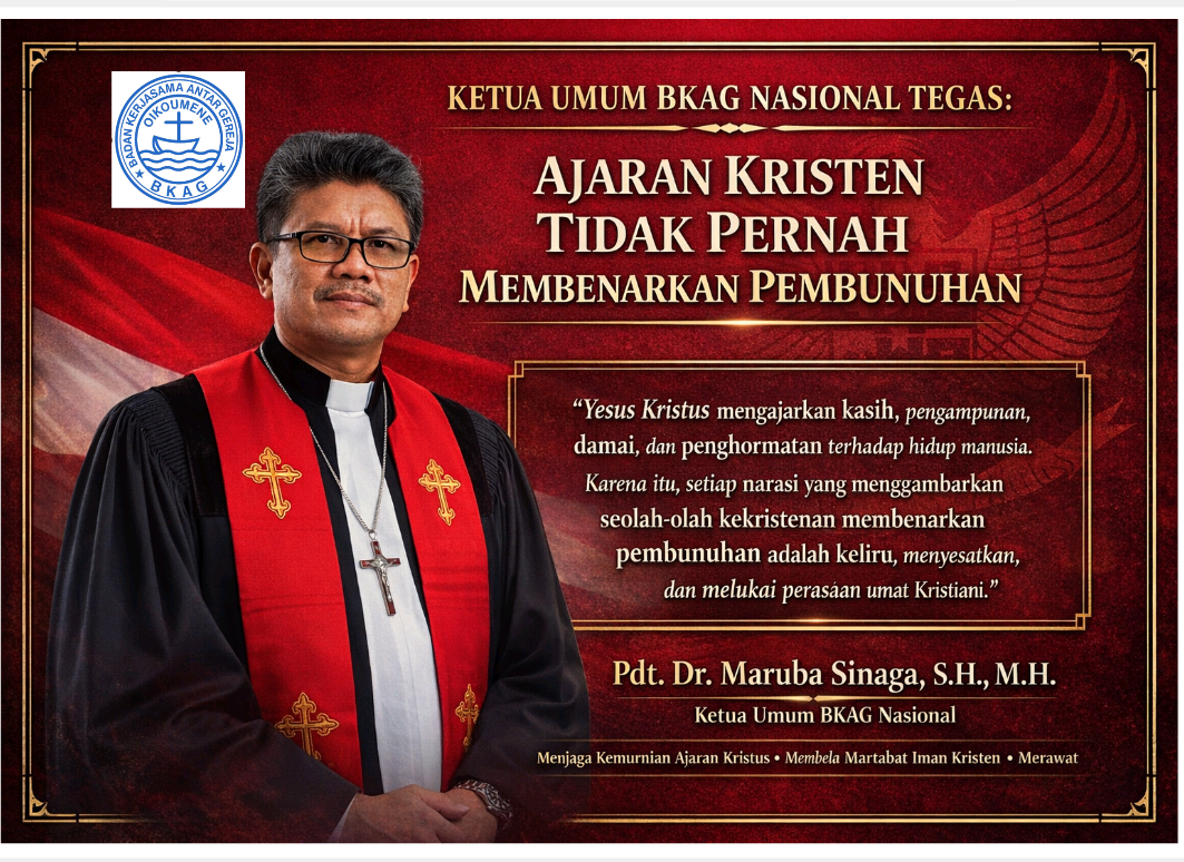 Saya, Pdt. Dr. Maruba Sinaga, S.H., M.H., Ketua Umum BKAG Nasional (Badan Kerjasama Antar Gereja Nasional), menyampaikan surat terbuka ini kepada seluruh tokoh bangsa, tokoh agama, tokoh masyarakat, pejabat publik, figur publik, serta seluruh rakyat Indonesia.